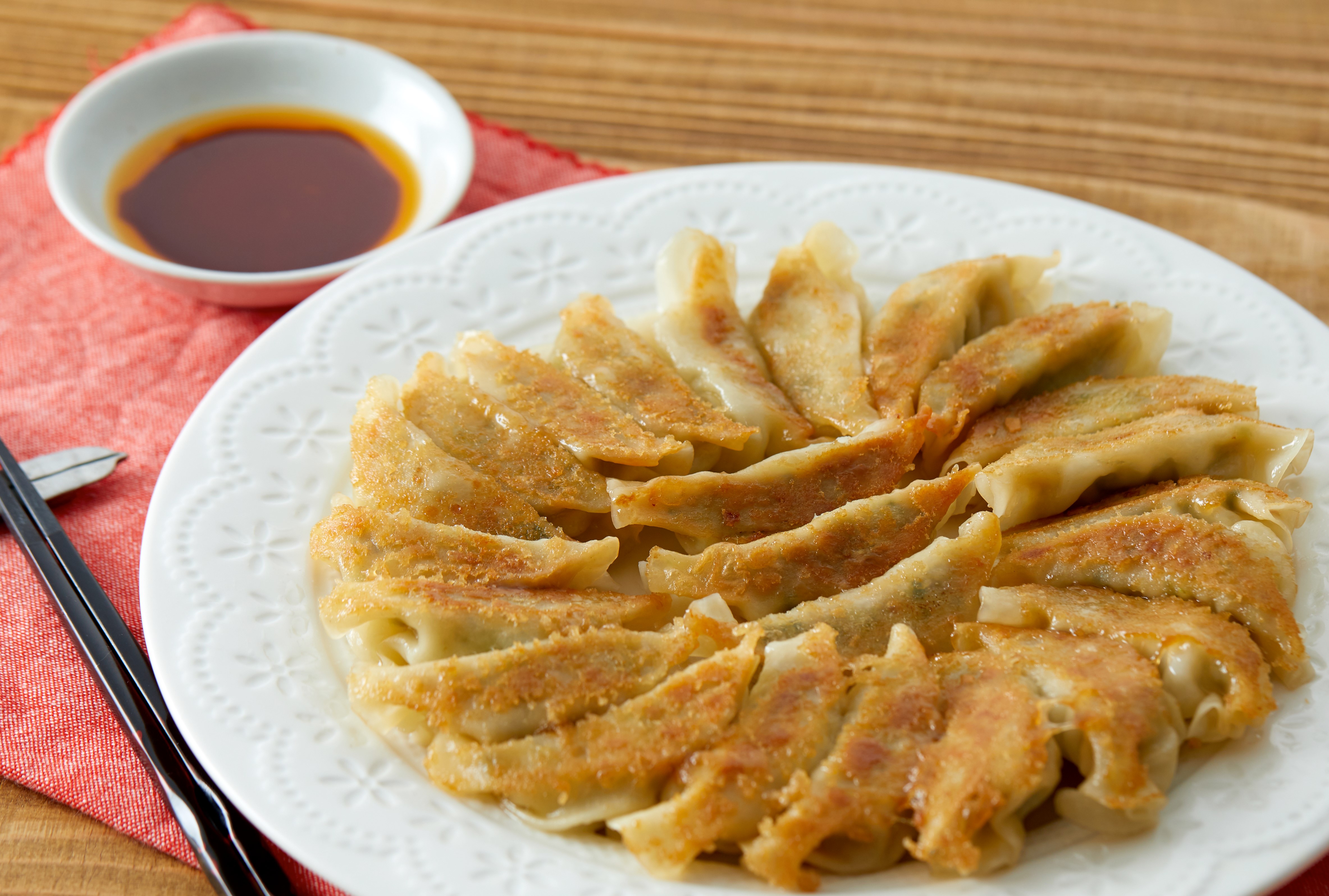 お肉の多い餃子ではなく、厳選された豚肉とフレッシュな野菜のバランスを考えモッチリかりかりに焼きあがる自社製の美味しい皮で包んだ黄金比率の餃子です。